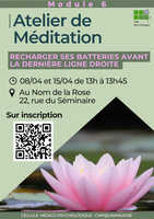 Thématique des séances du mois d'avril : "Recharger ses batteries avant la dernière ligne droite". Aidons les étudiant avant le blocus.