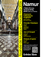 Dans le cadre de sa 13e tournée européenne, la Birmingham Festival Choral Society (BFCS) organise un concert gratuit à l’église Saint-Loup de Namur. Les fonds collectés à l'occasion de ce concert seront dédiés aux projets de la Cellule-Médico Psychologique de l'UNamur.